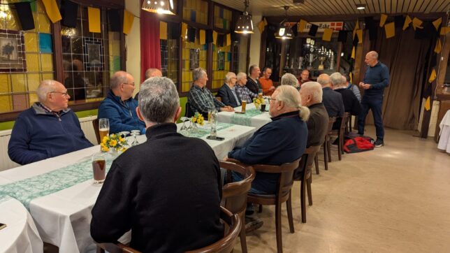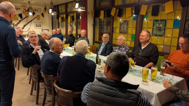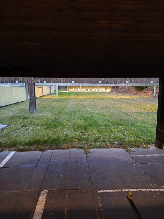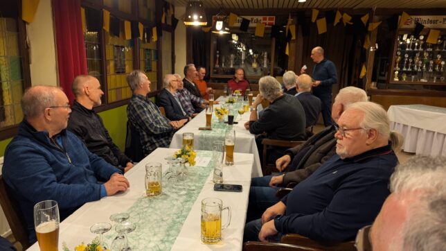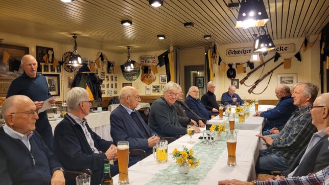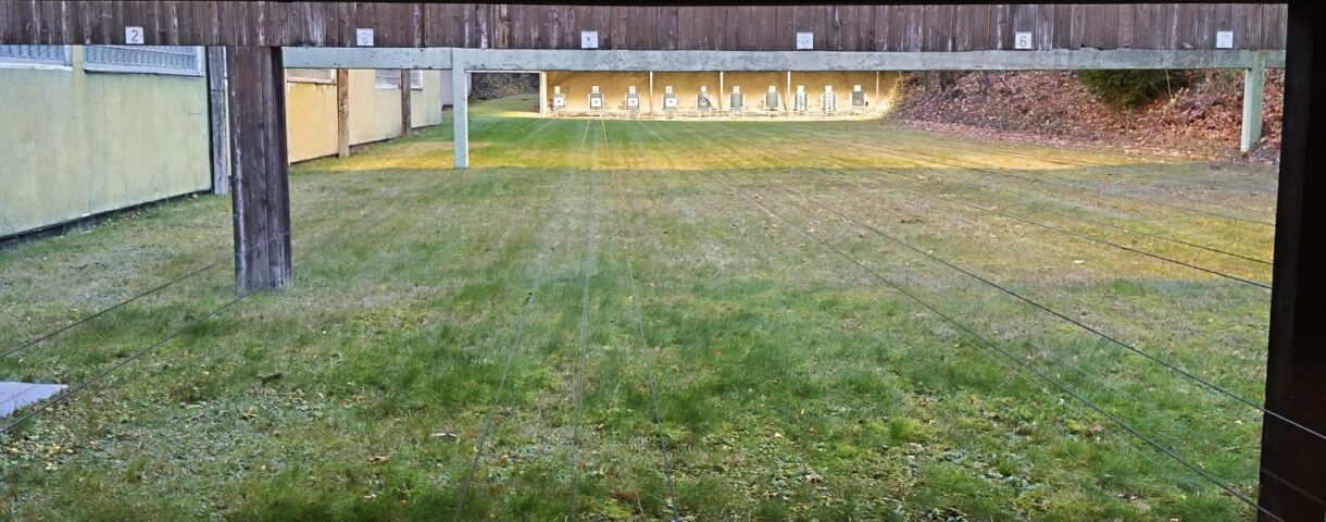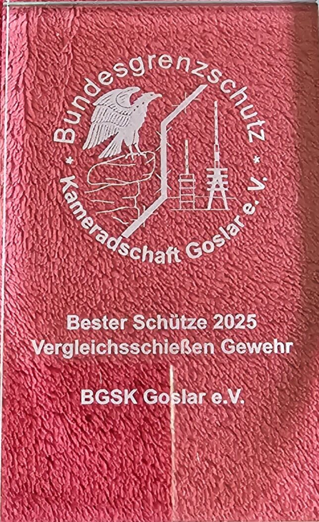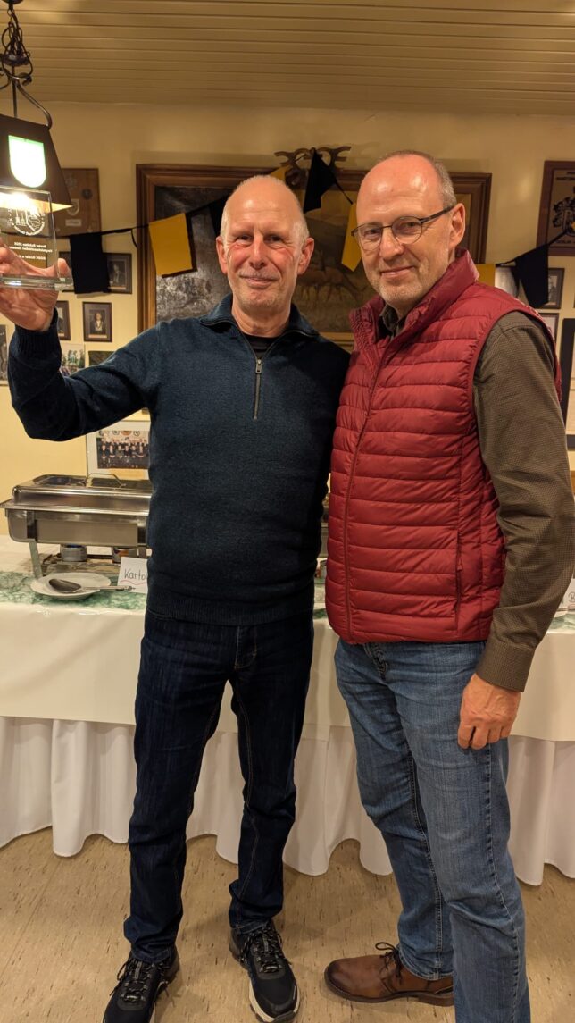 Bilder Schießen und Grünkohlessen 2025 KK Schießstand der PSG Mit dem KK-Gewehr wir der Wettbewerb geschossen Links Sieger des Schießens W. Kramer, rechts 2. Vorsitzender der BGSK Goslar, Frank Tappe Siegerpokal